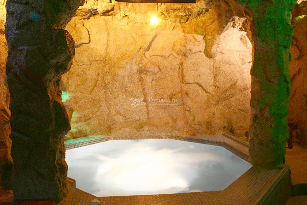- Просторная финская сауна на семь человек с подогреваемым бассейном размером 3x4 м с водопадом.